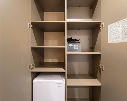 В каюте: двуспальная кровать, холодильник, телевизор, шкаф для одежды, радио, сейф, обзорное окно, душ, санузел, кондиционер, фен, электророзетка на 220V.