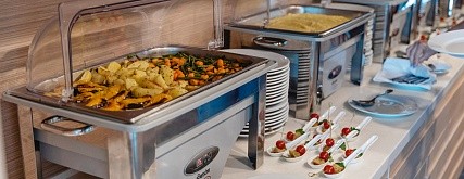- Завтрак – шведский стол или заказная система с элементами шведского стола, фиксированная рассадка. Вода (в графине на шведской линии), чай, кофе без ограничения;