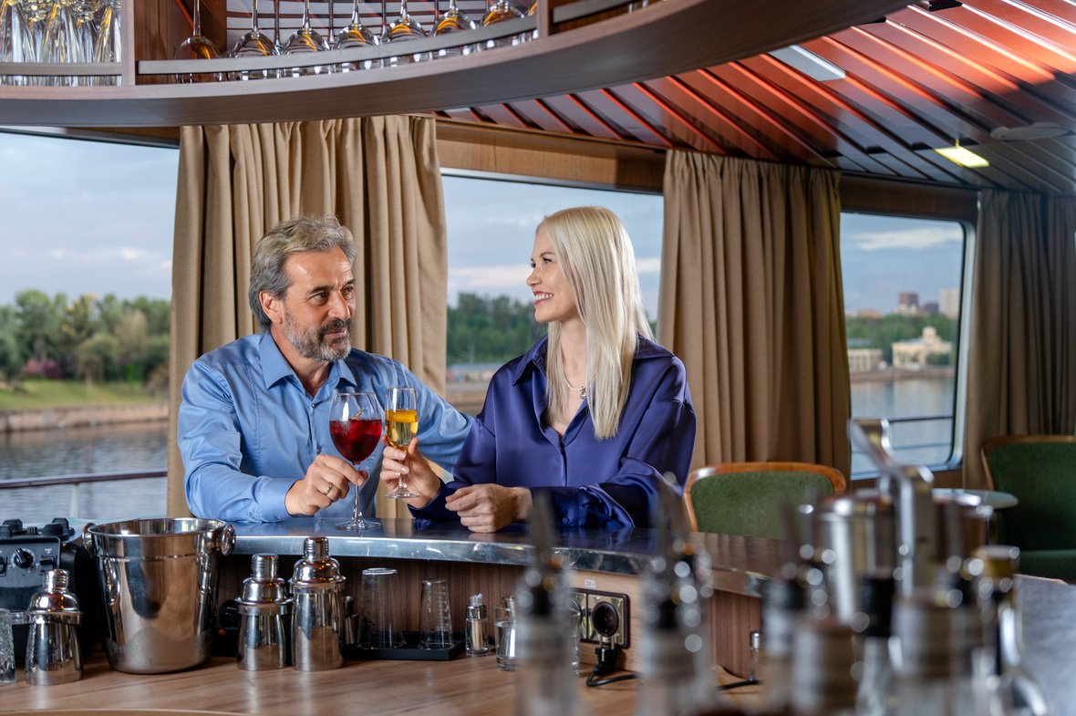 - Ужин – заказная система питания (выбор блюд со 2-го дня круиза) с элементами шведского стола (салат-бар, хлебная станция, фрукты). Включенные напитки (без ограничения): вода, чай, кофе. Кисломолочный напиток (1 стакан, 200 мл.) по запросу гостя. На выбор: вино красное / белое / игристое (1 бокал, 125 мл.) / водка (1 рюмка, 50 мл.) / пиво (1 бокал, 300 мл.) / домашний морс (1 бокал, 200 мл.). Фиксированная рассадка;