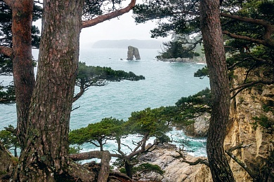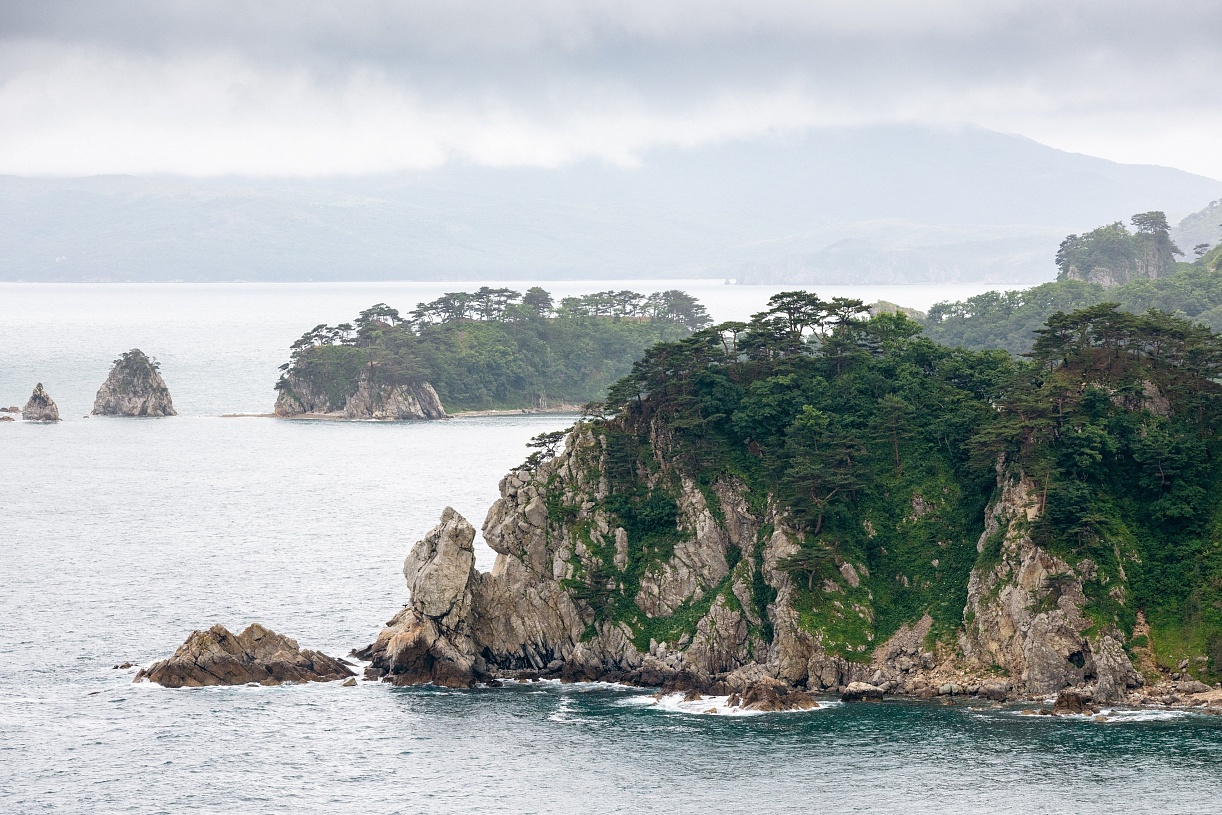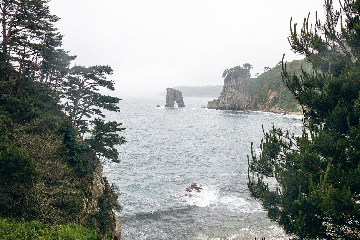 Двигаясь вдоль побережья Приморского края, прибываем на остров Петрова. Остров — часть огромного Лазовского заповедника, созданного для защиты уссурийских (то есть, относящихся к окрестностям реки Уссури; этим словом обозначают южную часть Дальнего Востока России) лесов и их обитателей. Остров находится в каких-то 700 метрах от берега, но из-за удалённости от цивилизации и регулирования туристического потока здесь бывает всего несколько тысяч человек в год. Главная достопримечательность острова — реликтовая тисовая роща. Она так отличается от любых других типов леса, что гостям заповедника предлагаю войти в неё с закрытыми глазами и, открыв их, почувствовать, как по спине побежали мурашки. Среди других растений острова: диморфант, рододендрон, бархат, аралия, корейская сосна, маньчжурская берёза и монгольский дуб. В материковой части заповедника местный гид расскажет нам об амурских тиграх и покажет их следы. Ближе к вечеру насладимся отдыхом на безлюдном пляже, украшенном сказочной красоты нерукотворными арт-объектами — каменными останцами.
