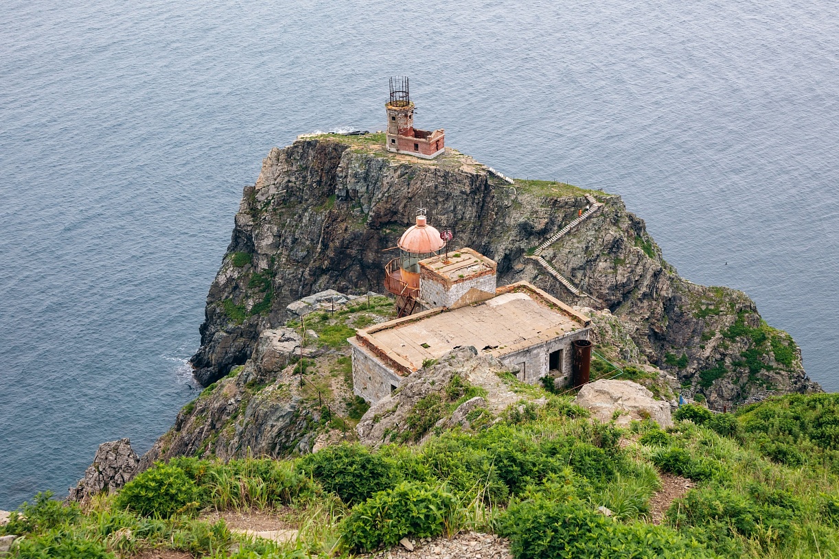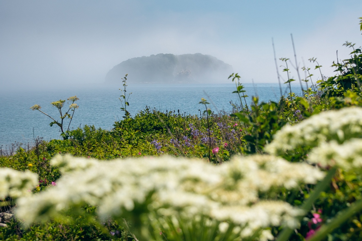 Начинаем движение на восток. Пересекаем громадный залив Петра Великого и подходим к подковообразному (чтобы в этом убедиться, посмотрите на карту) острову Аскольд. Как и другие острова Приморского края, Аскольд славен зелёными лугами, обрывистыми берегами и бесконечной морской синью. Но есть и свои особенности. Здесь обитает крупная популяция пятнистых оленей — и мы надеемся встретиться с одним из этих красавцев. На мысе Елагина недалеко друг от друга находятся целых два маяка — старый и новый. До середины XX века на острове добывалось золото, о чём сегодня напоминает заброшенный приисковый посёлок. А ещё туманы здесь столь густы и набегают так внезапно, что в период напряжённых отношений с Японией местный гарнизон обустроил туманный пост - наблюдательную позицию, которая находится ниже уровня тумана и позволяет видеть противника издалека в любую погоду.