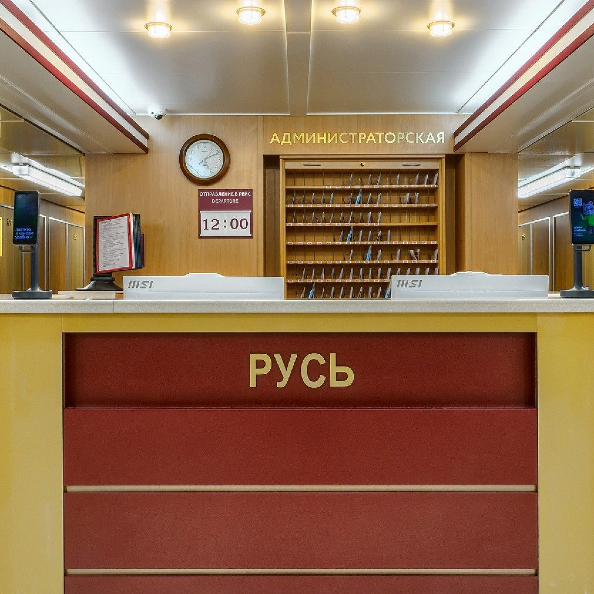 После регистрации вам выдадут ключ от вашей каюты, приглашение в ресторан (номер закреплённого за вами столика), расчётную карту компании «ВодоходЪ», бланк заказа экскурсий (для заполнения в первый день круиза).