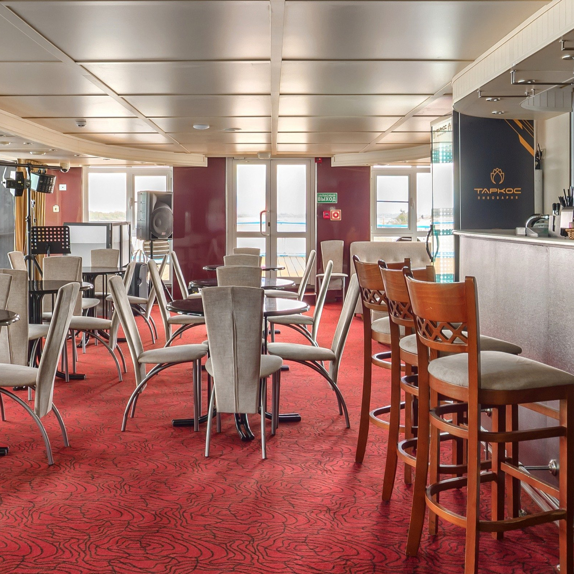 - Ужин — заказная система питания (выбор блюд со 2-го дня круиза). Включённые напитки (без ограничения): вода, чай, кофе, кисломолочный напиток (1 стакан 200 мл на ужин по запросу гостя). На выбор: вино красное / белое / игристое (1 бокал, 125 мл) / водка (1 рюмка, 50 мл) / пиво (1 бокал, 300 мл), домашний морс (1 бокал, 200 мл);
