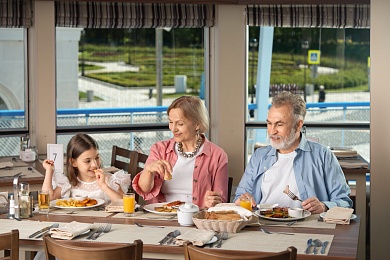 Расширенный тариф. Фиксированная рассадка в ресторане «Онега» на средней палубе, количество мест ограничено.