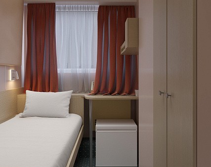 В каюте: два спальных места (одно над другим), шкаф для одежды, зеркало, радио, фен, душ, санузел, холодильник, кондиционер, обзорное окно, электророзетка на 220V.