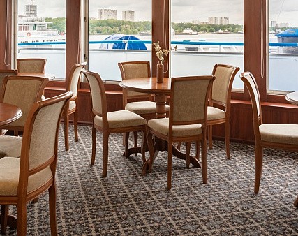 - Завтрак — шведский стол или заказная система с элементами шведского стола, фиксированная рассадка. Включённые напитки (без ограничения): вода, сок, чай, кофе. В рейсах до 4-х дней при ранней высадке в день прибытия завтрак континентальный;