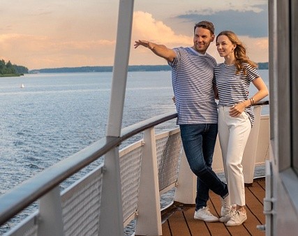 - Ужин – заказная система питания (выбор блюд со 2-го дня круиза), фиксированная рассадка. Включённые напитки (без ограничения): вода, чай, кофе. На выбор: вино красное / белое / игристое (1 бокал, 125 мл) / водка (1 рюмка, 50 мл) / пиво (1 бокал, 300 мл) / домашний морс (1 бокал, 200 мл). По запросу гостя: кисломолочный напиток (1 стакан, 200 мл).