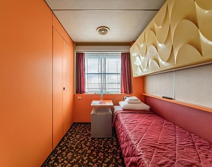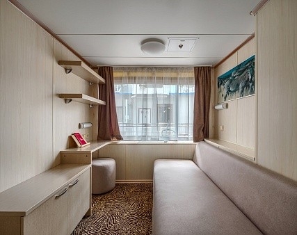 В каюте: два спальных места (одно над другим), шкаф для одежды, радио, центральный кондиционер, холодильник, телевизор, душ, санузел, фен, сейф, обзорное окно (в каютах, расположенных на главной палубе, после переоборудования в 2020 году окно не открывается согласно технике безопасности и требованиям морского регистра), электророзетка на 220V.