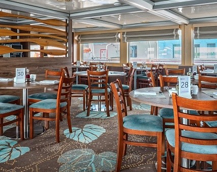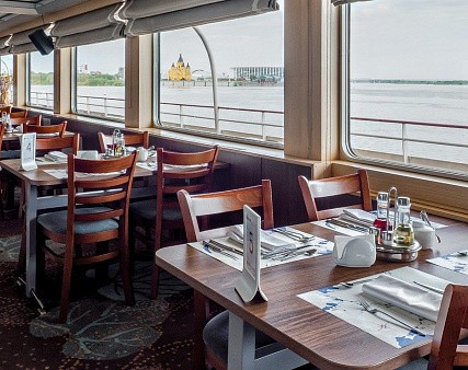 - Обед – заказная система питания (выбор блюд со 2-го дня круиза), фиксированная рассадка. Включённые напитки (без ограничения): вода, чай, кофе, морс.