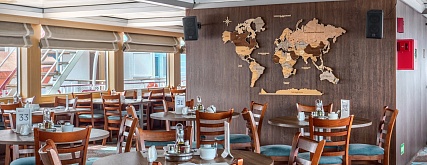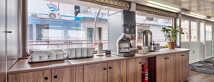 - Обед – заказная система питания (выбор блюд со 2-го дня круиза), фиксированная рассадка. Включённые напитки (без ограничения): вода, чай, кофе, морс.
