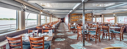 - Трехразовое питание . В день начала и день окончания круиза питание предоставляется в зависимости от времени посадки и высадки; в случае, если время проведения экскурсии совпадает со временем приема пищи, гостю предоставляется питание в ресторане/кафе города или выдается «ланч-бокс»