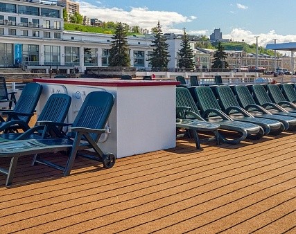 Площадь кают на шлюпочной и средней палубе — 9,8 м2, на главной палубе — 8,5 м2