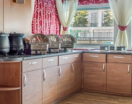 - Завтрак — шведский стол или заказная система с элементами шведского стола, фиксированная рассадка. Включённые напитки (без ограничения): вода, сок, чай, кофе. В рейсах до 4-х дней при ранней высадке в день прибытия завтрак континентальный;