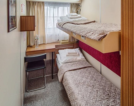 Возможна продажа каюты в двухместном одноярусном размещении (по стоимости 2-местной одноярусной каюты).