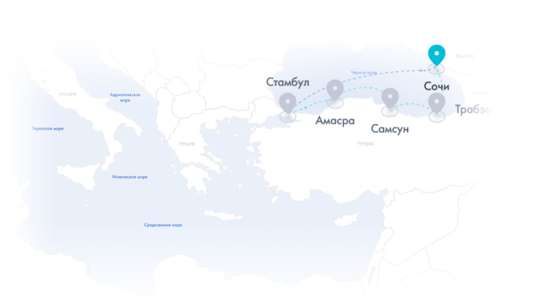СочиДень в мореСтамбул (2 дня)АмасраСамсунТрабзонСочи