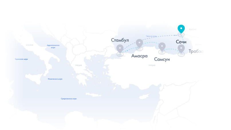 СочиДень в мореСтамбул (2 дня)АмасраСамсунТрабзонСочи