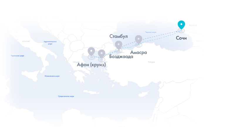 СочиДень в мореСтамбулАфон (круиз)БозджаадаАмасраДень в мореСочи