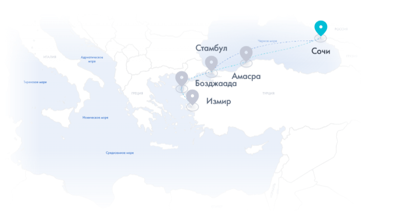 СочиДень в мореСтамбулБозджаадаИзмирДень в мореАмасраСочи