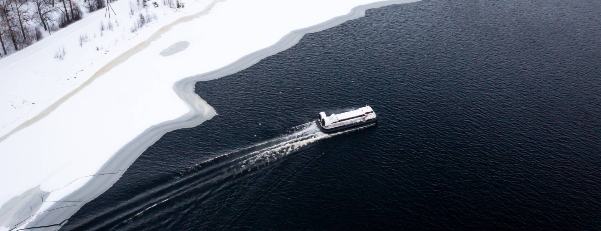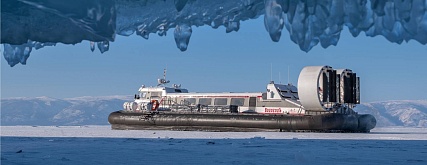 Переход на СВП по бухтам с самым красивым льдом. Здесь ветра обнажили обширный участок того самого волшебного льда с пузырьками и трещинами, которым знаменит Байкал в зимний период.