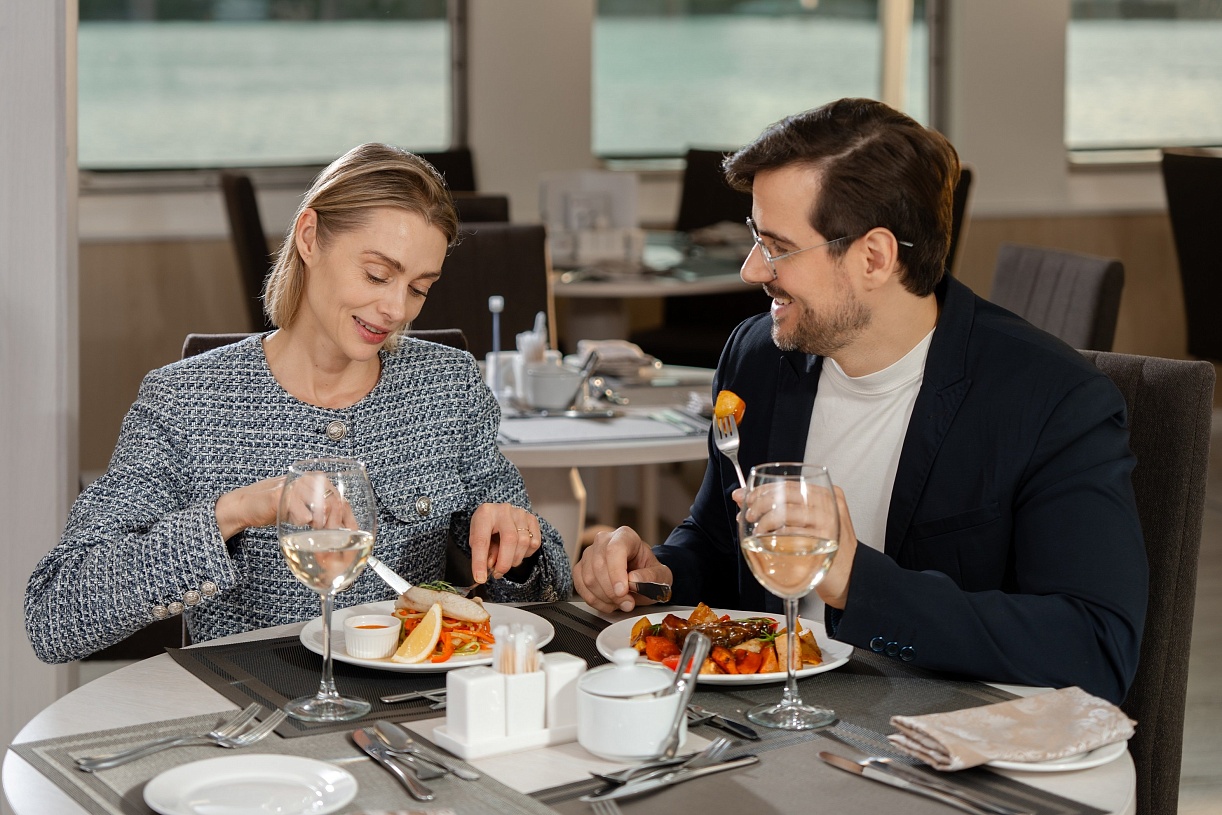 - Полный пансион (завтрак + обед + ужин): завтрак — шведский стол или заказная система с элементами шведского стола, фиксированная рассадка. Включённые напитки (без ограничения): вода*, сок, чай, кофе; обед — заказная система питания (выбор блюд со 2-го дня круиза), фиксированная рассадка. Включённые напитки (без ограничения): вода*, чай, кофе, морс (порционно); ужин — заказная система питания (выбор блюд со 2-го дня круиза), фиксированная рассадка. Включённые напитки (без ограничения): вода*, чай, кофе, кисломолочный продукт (1 стакан, 200 мл); порционно на выбор - вино красное / белое / игристое (1 бокал, 125 мл) / водка (1 рюмка, 50 мл) / пиво (1 бокал, 300 мл) / домашний морс (1 бокал, 200 мл).
