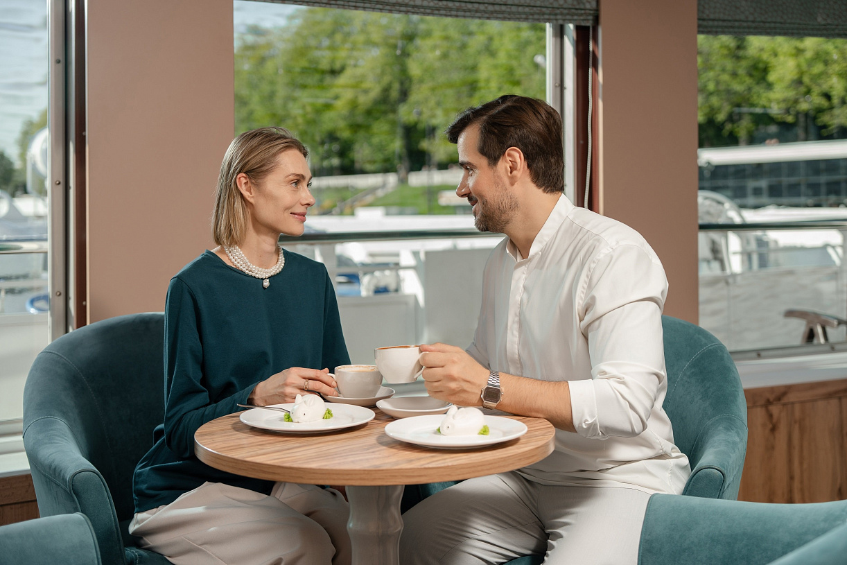 - Питание в соответствии с выбранным тарифом: завтрак, полупансион, полный пансион. В день начала и день окончания круиза питание предоставляется в зависимости от времени посадки и высадки; в случае, если время проведения экскурсии совпадает со временем приема пищи, гостю предоставляется питание в ресторане/кафе города или выдается «ланч-бокс»