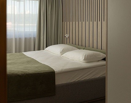 В каютах № 301, 302, 303, 304 — двуспальная кровать, диван (не раскладывается, можно разместить одного человека), площадь каюты 25,4 м2