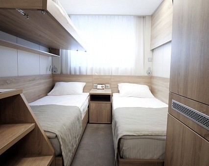 В каютах № 359, 360 — двуспальная кровать, диван (не раскладывается, можно разместить одного человека), площадь каюты 24,8 м2