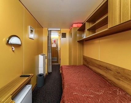 В каюте: одно спальное место, шкаф для одежды, холодильник, телевизор, фен, радио, душ, санузел, кондиционер, обзорное окно, электророзетка на 220V.