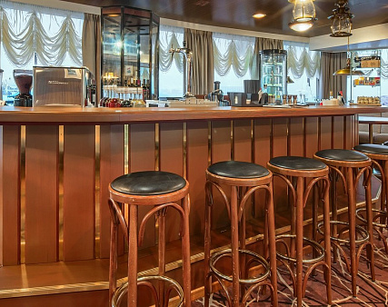 - Ужин — заказная система питания (выбор блюд со 2-го дня круиза). Включённые напитки (без ограничения): вода, чай, кофе, кисломолочный напиток (1 стакан 200 мл на ужин по запросу гостя). На выбор: вино красное / белое / игристое (1 бокал, 125 мл) / водка (1 рюмка, 50 мл) / пиво (1 бокал, 300 мл), домашний морс (1 бокал, 200 мл);