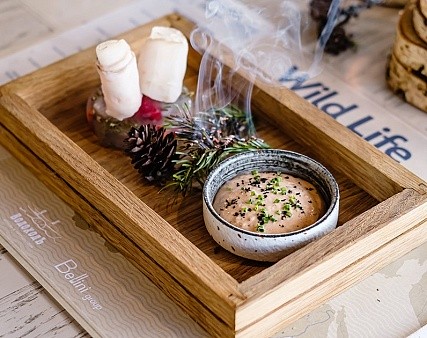 - Ужин – заказная система с включенными напитками (вода, чай, кофе, домашний морс, пиво) без ограничения и сибирскими настойками на аперитив (2 шота), фиксированная рассадка;