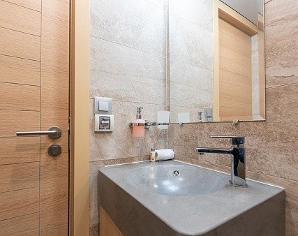 Площадь — 17,7 м2. Однокомнатная каюта с удобствами (душ, санузел, кондиционер) рассчитана на размещение до трех человек.