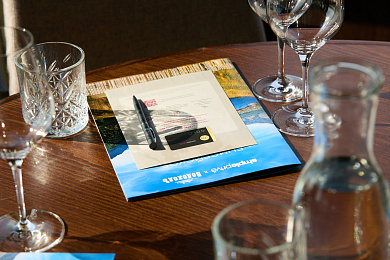 Вы сможете «попробовать Сибирь на вкус» благодаря нашему уникальному меню, включающему сибирские специалитеты с авторскими решениями шеф-поваров. В один из вечеров во время круиза вас ожидает гастрономический ужин от Алексея Ровинца — шеф-повара красноярского ресторана «Хозяин Тайги». Алексей — настоящий виртуоз своего дела. Его творения сочетают в себе уважение к традициям и смелые, новаторские решения. Среди коронных блюд шефа выделяют полярный плашкоут — строганину из рыбы, красиво разложенную на ледяной глыбе. Сибирский гастрономический ужин великолепно дополнят пейзажи нетронутой северной природы за бортом.