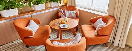 - Завтрак – шведский стол или заказная система с элементами шведского стола, фиксированная рассадка. Включённые напитки (без ограничения): вода, сок, чай, кофе.