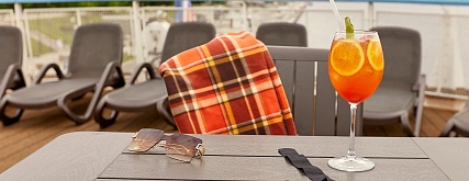 - Ужин – заказная система питания (выбор блюд со 2-го дня круиза), фиксированная рассадка. Включённые напитки (без ограничения): вода, чай, кофе. На выбор: вино красное / белое / игристое (1 бокал, 125 мл) / водка (1 рюмка, 50 мл) / пиво (1 бокал, 300 мл) / домашний морс (1 бокал, 200 мл). По запросу гостя: кисломолочный напиток (1 стакан, 200 мл).