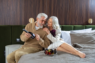 - Ужин — заказная система питания (выбор блюд со 2-го дня круиза), фиксированная рассадка. Включённые напитки (без ограничения): вода, чай, кофе, домашний морс. На выбор: вино красное / белое / игристое (1 бокал, 125 мл) / водка (1 рюмка 50 мл) / пиво (1 бокал, 300 мл).