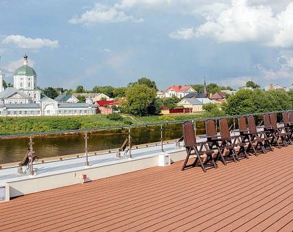 - Обед — заказная система питания (выбор блюд со 2-го дня круиза) с элементами шведского стола (десерт, фрукты, морсы), фиксированная рассадка. Включённые напитки (без ограничения): вода, чай, кофе, домашний морс;