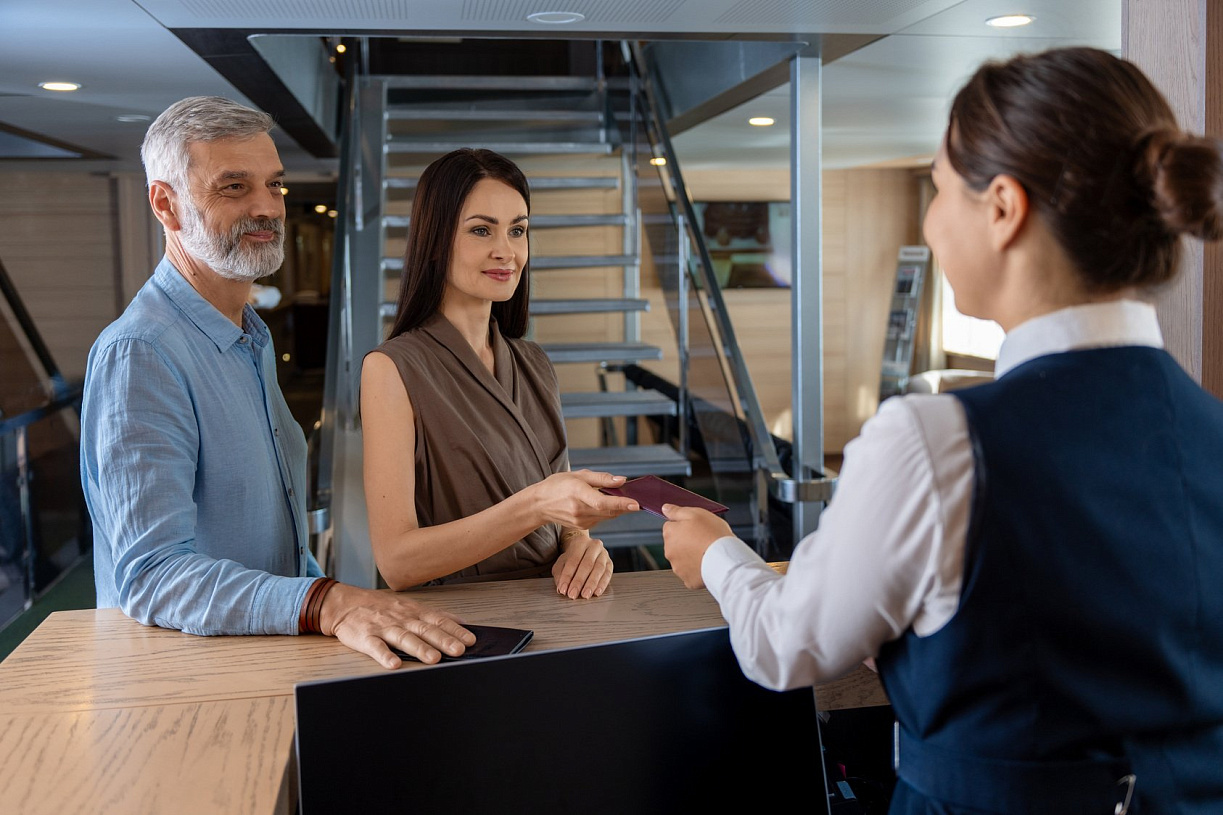 После регистрации вам выдадут ключ от вашей каюты, приглашение в ресторан (номер закреплённого за вами столика), расчётную карту компании «ВодоходЪ», бланк заказа экскурсий (для заполнения в первый день круиза).