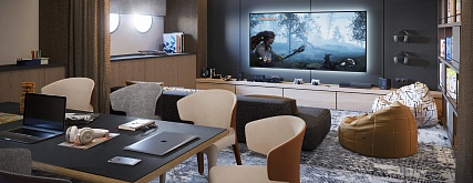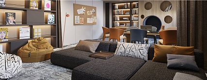 Данные каюты оборудованы межкомнатной звукоизоляционной дверью, оснащены качественной функциональной мебелью и современной бытовой техникой. Это идеальное решение - объединение пространства для большой семьи, ценящей комфорт. Площадь кают после объединения — 35,2 м2.