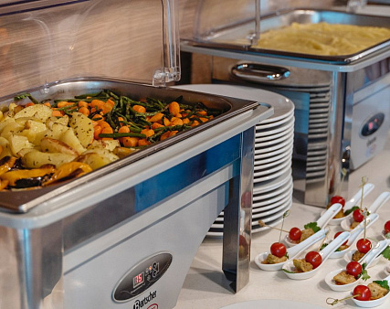 - Завтрак – шведский стол или заказная система с элементами шведского стола, фиксированная рассадка. Вода (в графине на шведской линии), чай, кофе без ограничения;