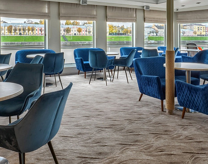 - Бар с закусками – Режим работы: в туре продолжительностью 7 ночей и более – 3 раза, в туре продолжительностью 5-6 ночей – 2 раза, в туре продолжительностью 4 ночи и менее – 1 раз. Время работы: 2 часа в зависимости от времени стоянки в порту. Ассортимент включает салаты, закуски (чипсы, сухарики, крекеры), куриные крылья, блинчики, сухофрукты.