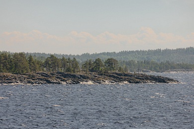 Маршрут теплохода пролегает по узким проливам и живописной акватории северного Приладожья. С 10.00 до 13:35 с палубы теплохода вам откроются прекрасные виды.