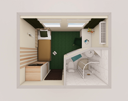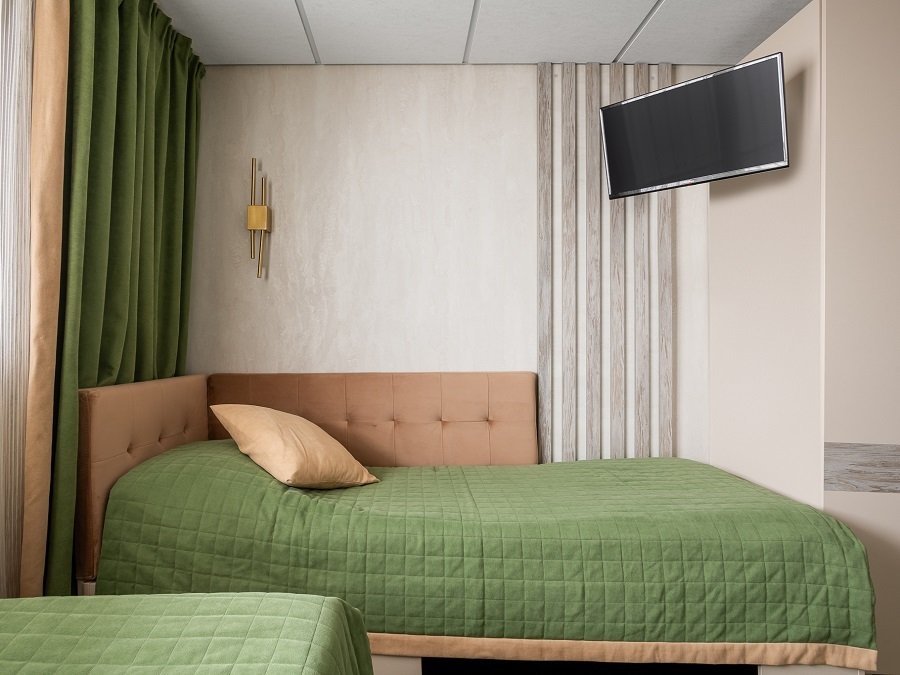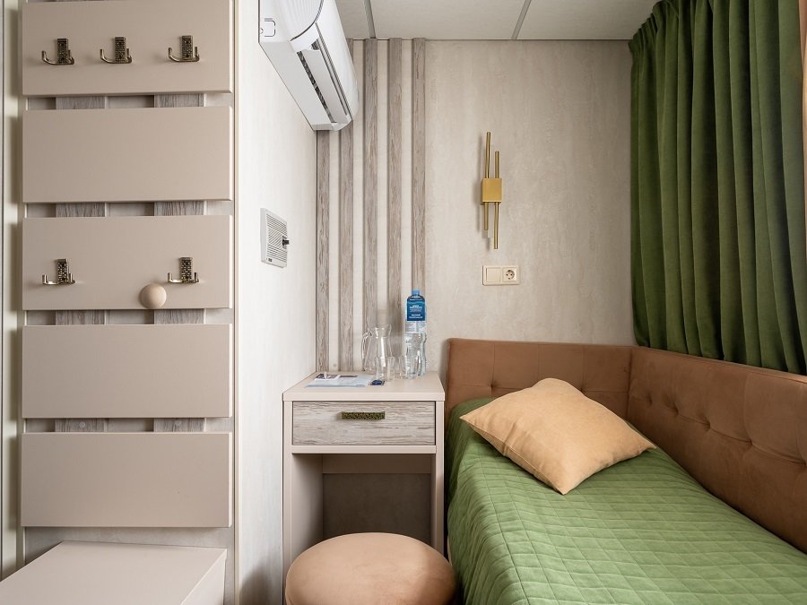 - Возможно размещение третьего человека на дополнительном месте – односпальный диван.