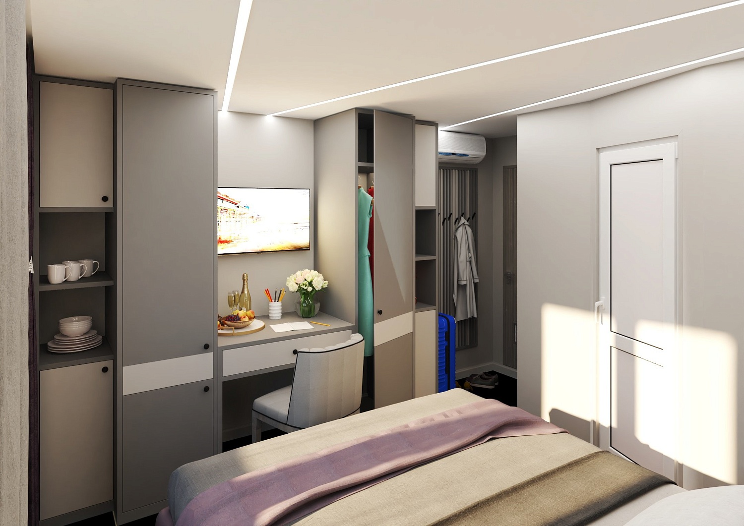 Услуги туристов в каюте: косметика для душа, туалетные принадлежности, щетка для одежды, банные халаты, маски для сна, тапочки, набор посуды и столовых приборов, чайная пара, питьевая вода и «приветственный набор» (игристый напиток, фрукты), мини-бар (за дополнительную плату), капсульная кофемашина, плед для каждого туриста.