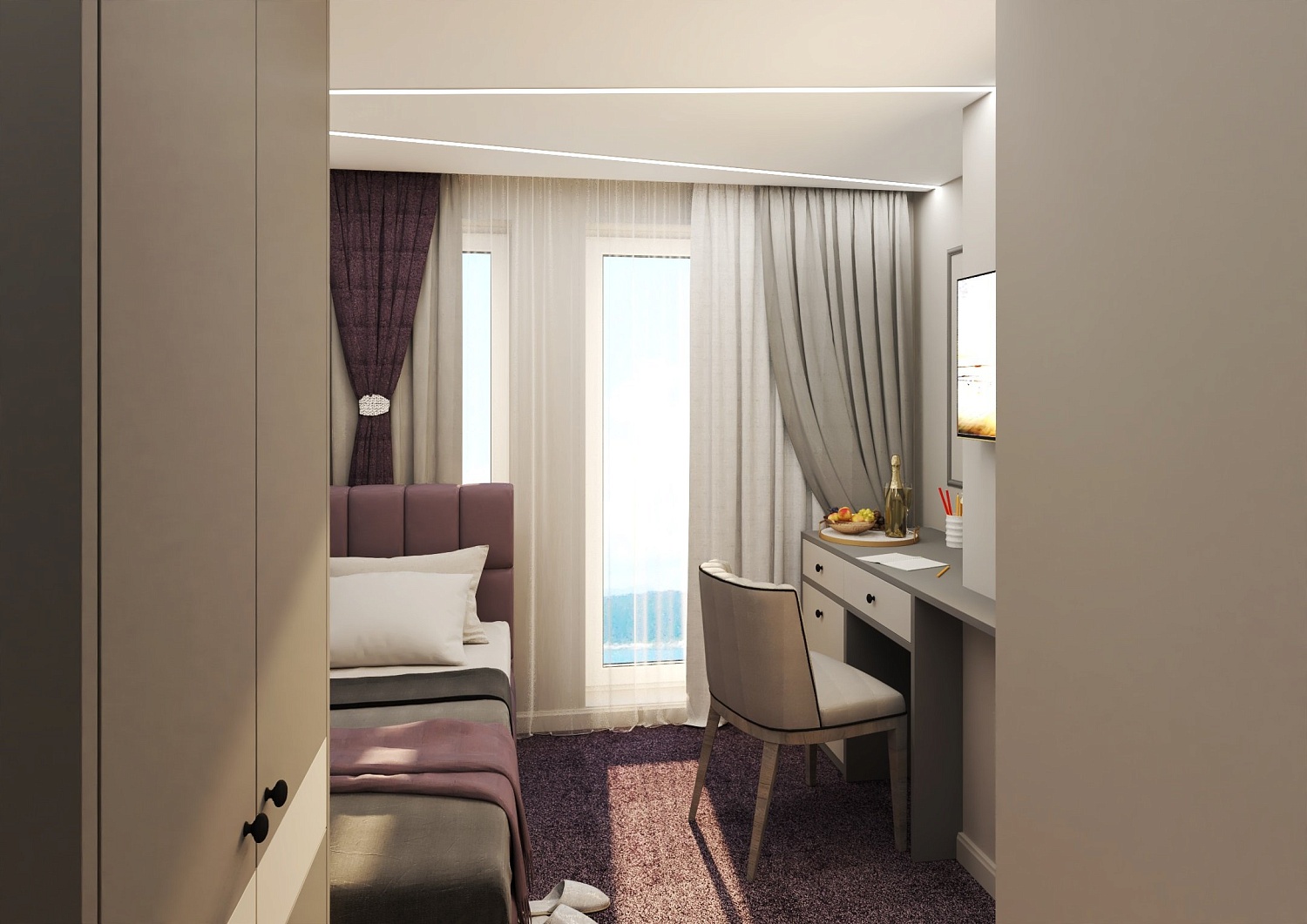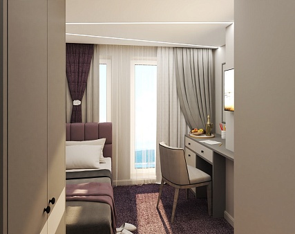 К услугам гостей: косметика «Люкс» для душа, туалетные принадлежности, щетка для одежды, банные халаты, маски для сна, бритвенный набор, тапочки, набор посуды и столовых приборов, чайная пара, питьевая вода и «приветственный набор» (премиальный игристый напиток, фрукты), мини-бар (за дополнительную плату), плед для каждого туриста.