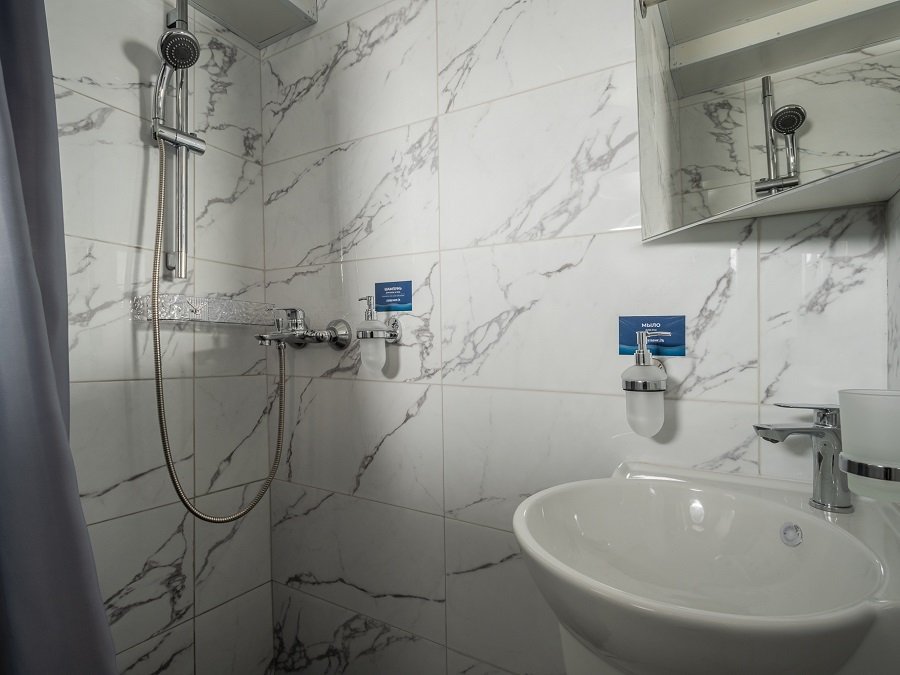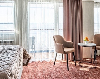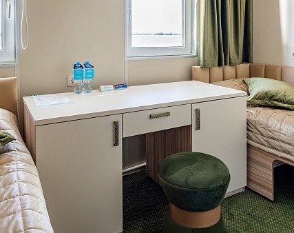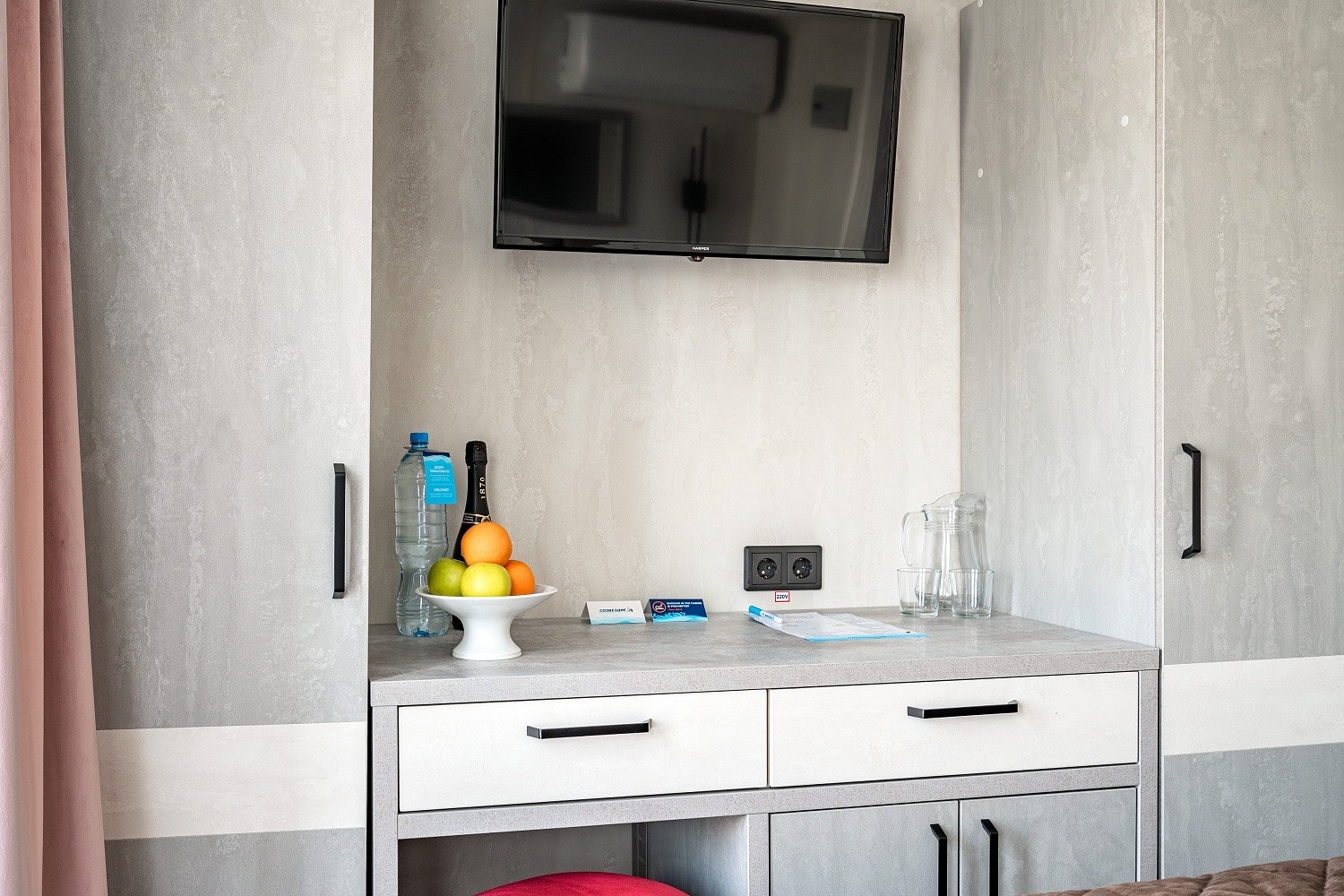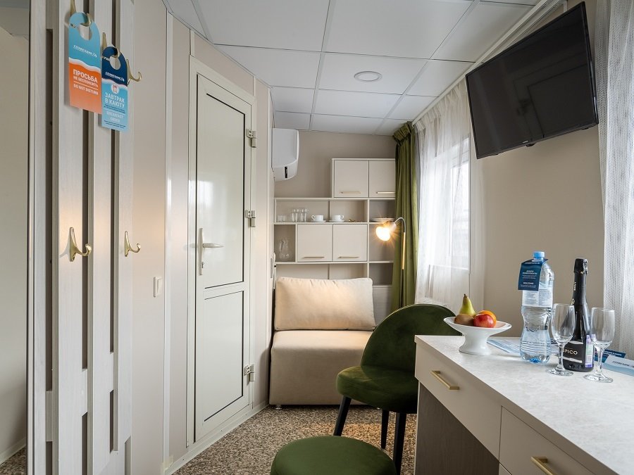 К услугам гостей: косметика «Люкс» для душа, туалетные принадлежности, щетка для одежды, банные халаты, маски для сна, бритвенный набор, тапочки, набор посуды и столовых приборов, чайная пара, питьевая вода и «приветственный набор» (премиальный игристый напиток, фрукты), мини-бар (за дополнительную плату), плед для каждого туриста.