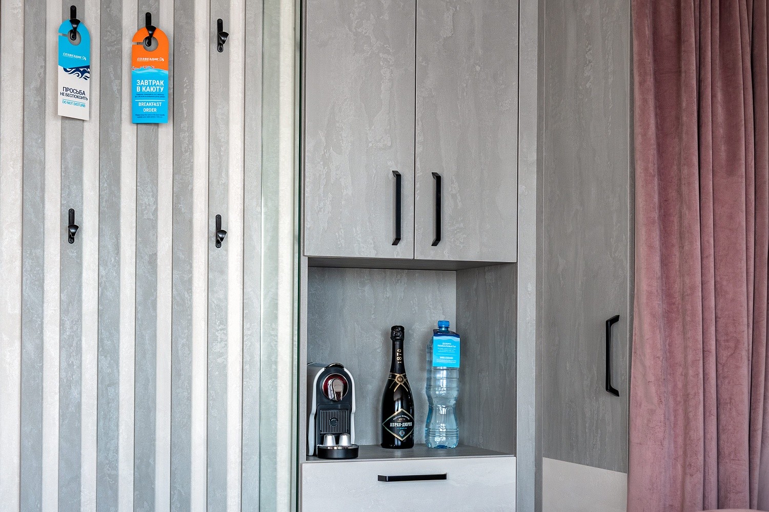 К услугам гостей: косметика для душа, туалетные принадлежности, щетка для одежды, банные халаты, маски для сна, тапочки, набор посуды и столовых приборов, чайная пара, питьевая вода и «приветственный набор» (игристый напиток, фрукты), мини-бар (за дополнительную плату), капсульная кофемашина (одна чашка кофе на человека – в подарок).