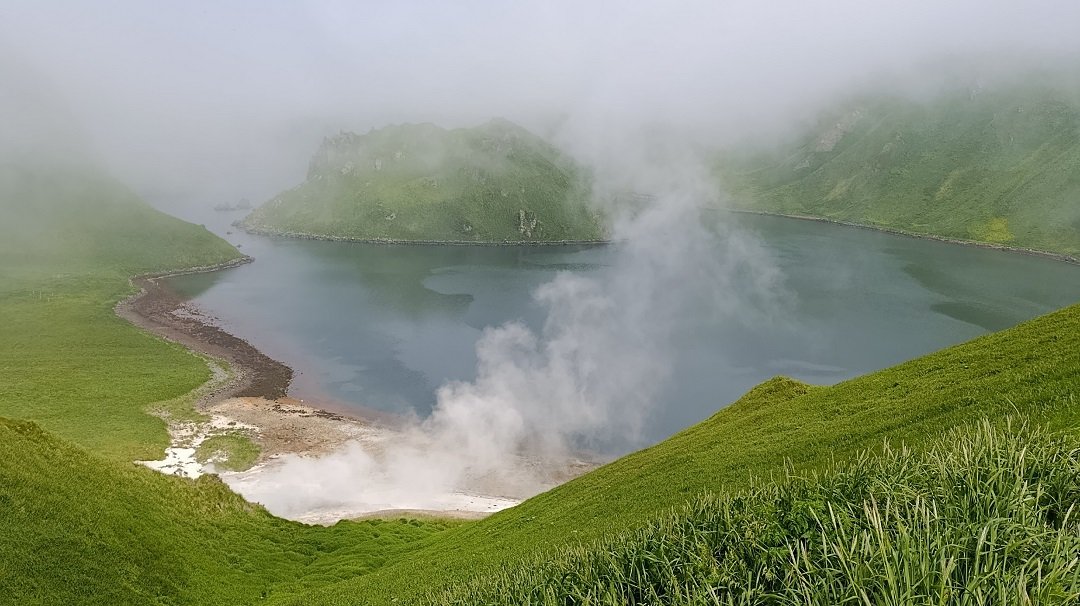 Тем, кто готов к активным приключениям, предлагается дневной трекинг к вулкану Головнина — древнему исполину, чья кальдера образовалась после мощного извержения. Маршрут пролегает через заросли кедрового стланика и курильского бамбучника, открывая виды на Тихий океан, Японию, вулканы Менделеева и Руруй. В кратере Головнина находятся два живописных озера — Горячее и Кипящее. Названия озер оправдывают себя: парящие фумаролы и серные источники наполняют воздух характерным запахом и напоминанием о неутихающей вулканической силе острова.