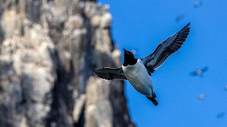 В южной части чукотского побережья расположена поражающая своими контрастами Бухта Преображения. С одной стороны ее обрамляют величественные отвесные скалы самых причудливых форм — и почти каждая из них густо покрыта птичьими базарами. Яркие тупики, важные ипатки и топорки, стремительные кайры, бургомистры, моевки и десятки других видов создают здесь удивительную какофонию звуков и красок. Наблюдать за ними — истинное удовольствие, а фотографии, сделанные в бухте Преображения, всегда получаются особенно выразительными: птицы позируют на фоне живописных каменных утесов, нарочито выбирая лучшие декорации.