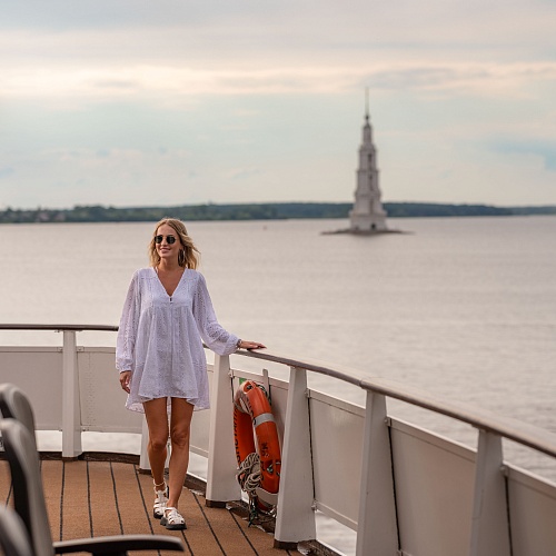 Водоход.Лайт Семисотлетний русский город Калязин вырос из ремесленных и торговых слободок. Они окружали богатый монастырь, который основал в XV в. тверской служилый человек из знатного рода кашинских бояр Кожиных — Матвей Кожин. После смерти жены он принял постриг в Кашинском Николаевском (Клобуковом) монастыре под именем Макария и отправился на левый берег Волги. Здесь и возник Троицкий монастырь. Землю под обитель пожертвовал местный владелец Иван Каляга (или Калязя), отчего монастырь и получил название Калязин.