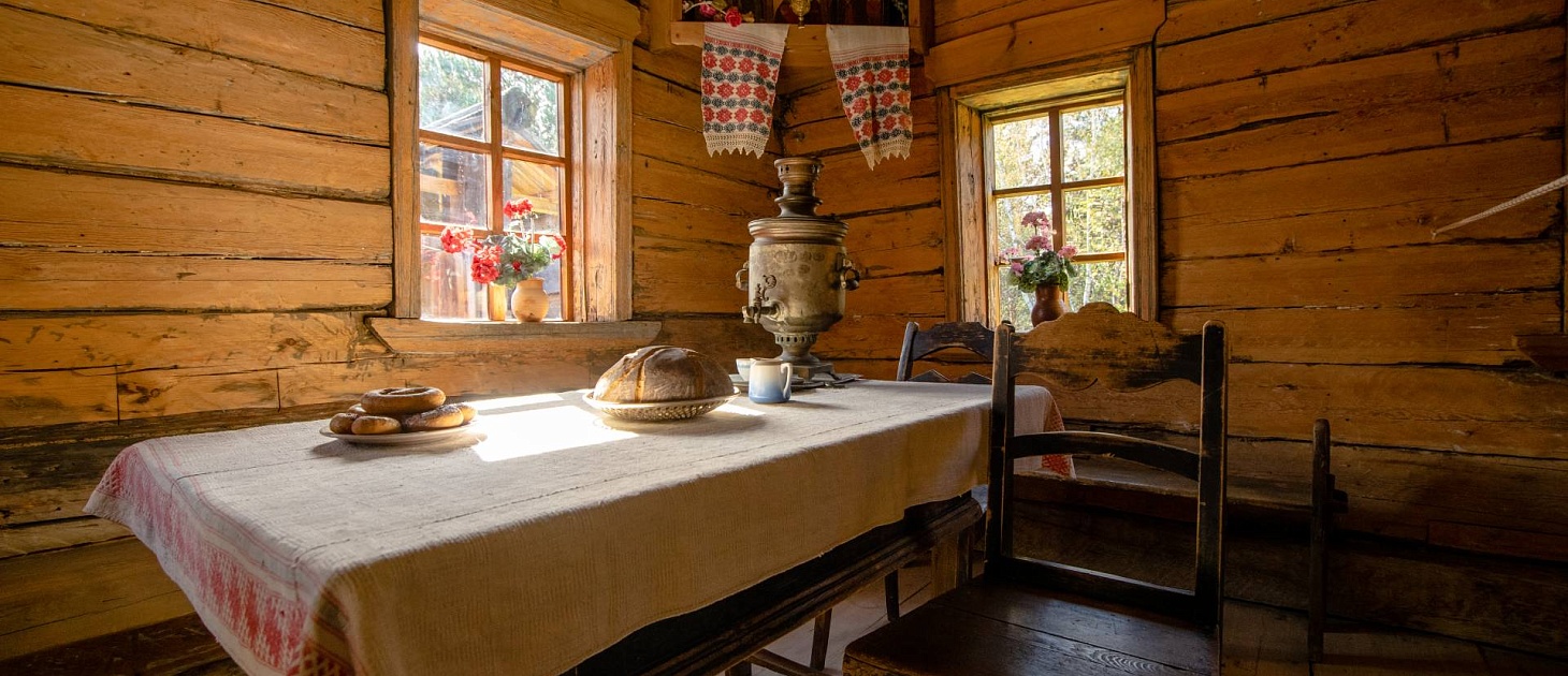 • Национальные дома. В избах, юртах и чумах сохранен аутентичный быт — вы проникнетесь атмосферой старины, узнаете, как жили люди и какими орудиями труда пользовались. Об их быте, особенностях жизни и верованиях рассказывают эвенкийские и тофаларские стойбища, комплекс эвенкийских захоронений и бурятский улус-летник.
